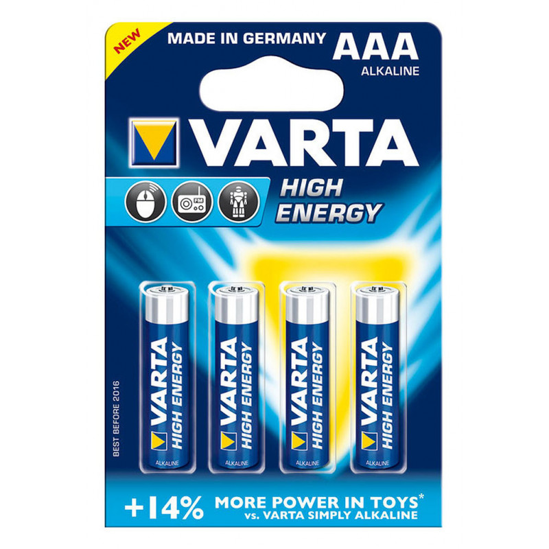Les piles AAA Varta Alkaline High Energy sont les plus puissantes proposées par la marque. Elles sont conçues pour des appareils gourmands en énergie comme de nombreux jouets ou lampes de poche. Lot économique de 16 piles. Produit unitaire EAN 4008496559749, lot de 4 EAN 3701248200708.