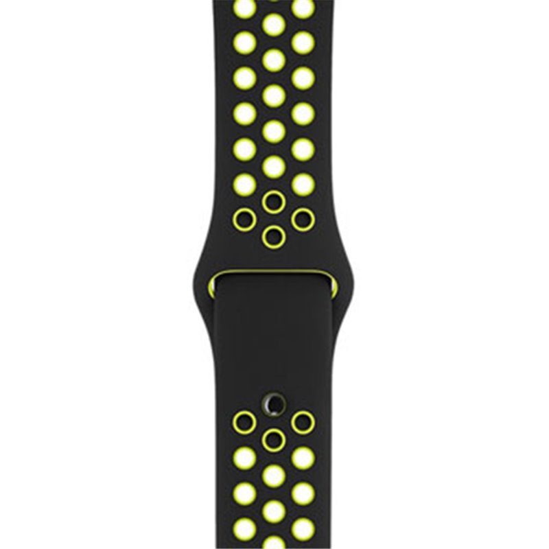 Bracelet Sport Nike Noir/Volt 38mm (S/M et M/L). Composé de fluoroélastomère haute performance exclusif et doté de perforations moulées par compression pour une meilleure aération, le Bracelet Sport Nike est solide et résistant, mais aussi étonnamment doux. Son matériau souple et dense épouse avec élégance la courbe de votre poignet et vous assure une grande sensation de confort. Et grâce à son système innovant de fermeture à clou et passant, votre montre tient parfaitement en place. Comme les autres bracelets Apple Watch, il peut être associé à tous les boîtiers de même taille. (matériel neuf non déballé, garantie totale 3 ans).