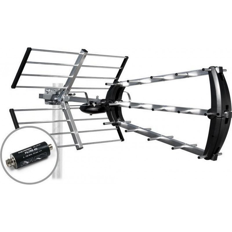 NOUVEAU STANDARD UHF ÉVITE LES PERTURBATIONS 4G 26dB Cette antenne possède une bande passante adaptée au nouveau standard UHF (largeur de bande UHF plus courte). Fournie avec un filtre 4G, elle permet une réception optimale des signaux hertziens numériques tout en assurant une protection efficace contre les perturbations potentielles liées à la 4G. Ses dimensions réduites et sa haute performance la rendent idéale pour une installation dans les combles. PRESENTATION POINTS FORTS Bande passante adaptée à la nouvelle largeur de la bande UHF Spéciale 4G Filtre 4G fourni: permet de bloquer les interférences dues aux signaux de la téléphonie mobile 4G (LTE) Antenne en aluminium: légère Prémontée: assemblage rapide Gain: 26dB 16 éléments, de forme tubulaire pour une meilleure résistance CARACTERISTIQUES TECHNIQUES Fréquence: 470 - 790 MHz Canaux: 21/60 Traitement anti-corrosion Fixation: bride et étrier Connectique fiche F Dimensions: l=80cmxL=36,5cmxh=36cm Filtre hautes performances Blindé et antiparasites Réjection: > 60dB à 825MHz. Produit neuf dans son emballage d'origine bénéficiant de la garantie originale du fabricant. EAN 3420744150446.