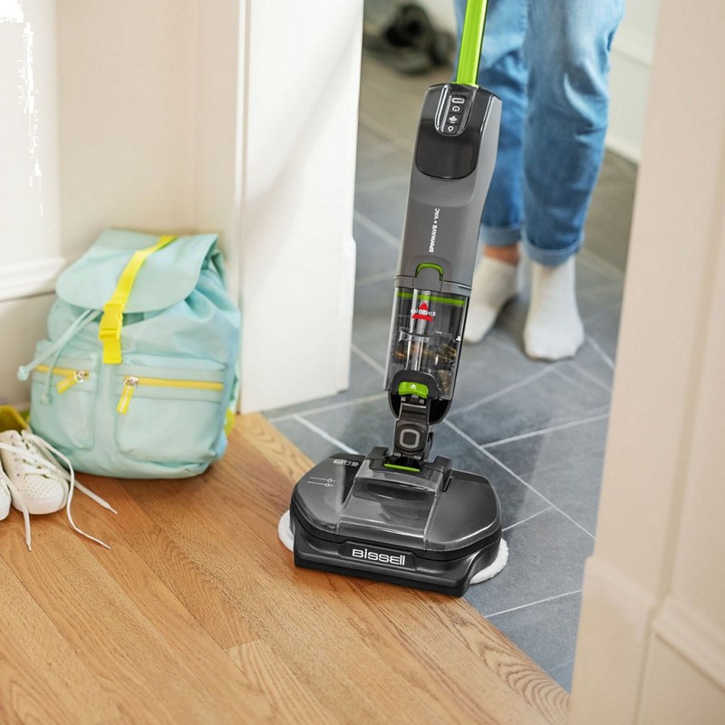 BISSELL® SpinWave® Vac Pet Select: Redéfinir le Nettoyage des Sols Le BISSELL® SpinWave® Vac Pet Select est votre nouvel allié pour une maison propre et accueillante, offrant une expérience de nettoyage des surfaces dures sans précédent. Conçu pour les foyers avec ou sans animaux, cet appareil sans fil associe les performances d&-39 un aspirateur haut de gamme à l&-39 efficacité d&-39 une serpillière moderne pour un nettoyage impeccable et sans effort. Trois Modes de Nettoyage Adaptatifs Le SpinWave® Vac Pet Select propose trois modes de nettoyage innovants: un mode aspiration pour une collecte puissante des débris, un mode avec tampons rotatifs pour frotter efficacement les sols, et un mode combiné qui maximise l&-39 efficacité en un seul passage. Cette polyvalence répond à tous vos besoins, du nettoyage quotidien aux sessions plus intensives. Technologie Avancée pour un Résultat Éclatant Doté d&-39 une technologie d&-39 aspiration cyclonique, cet appareil capte facilement poils d&-39 animaux, miettes et poussières, les retenant dans son réservoir sec. Les MopPads rotatifs imprégnés d&-39 une solution nettoyante de pointe éliminent les taches résistantes et les marques, laissant vos sols brillants, qu&-39 ils soient en bois, en stratifié ou en tout autre matériau. Une Conception Sans Fil pour une Flexibilité Maximale Profitez jusqu&-39 à 70 minutes d&-39 autonomie en mode serpillière pour une grande liberté de mouvement, même sous les meubles et le long des plinthes. Le système automatique de distributi. Produit neuf dans son emballage d'origine bénéficiant de la garantie originale du fabricant. EAN 0011120275117.