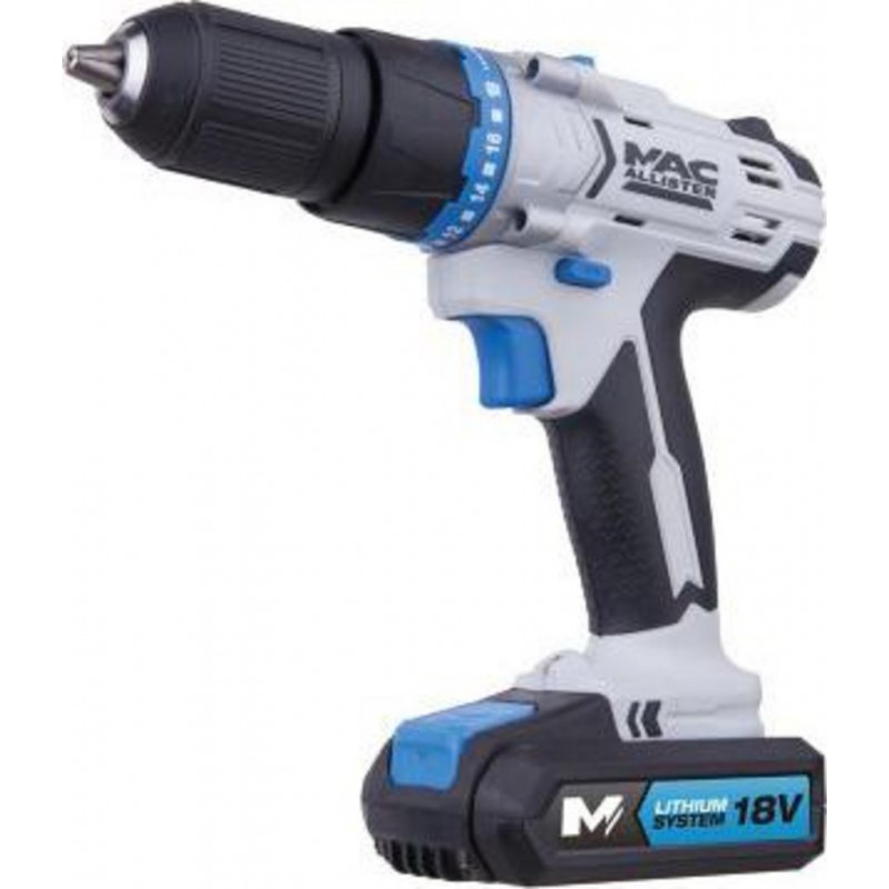 Confortable à manipuler, la perceuse visseuse à percussion sans fil Mac Allister possède 21 réglages de couple, ce qui lui confère une très grande polyvalence. Comprend 1 batterie Li-ion 1,5 Ah et un chargeur dans un sac en nylon très pratique Fonction(s) Perçage et percussion 1 batterie Li-ion 1,5 Ah, 1 chargeur à charge rapide en 1 heure et notice 3 fonctions pour des performances de perçage optimales: Visseuse - Pour visser et dévisser facilement des vis Perceuse rotative - Pour percer dans le bois ou le métal Percussion - Pour percer dans le béton Batterie au lithium garantissant une grande autonomie à pleine puissance et une puissance constante qui n'impacte pas les performances jusqu'à ce qu'une recharge soit nécessaire. Charge complète en 60 minutes La LED intégrée améliore la visibilité dans les environnements mal éclairés Deux vitesses pour des performances de perçage optimales dans le bois, le métal et le béton. Produit neuf dans son emballage d'origine bénéficiant de la garantie originale du fabricant. EAN 3663602798477.