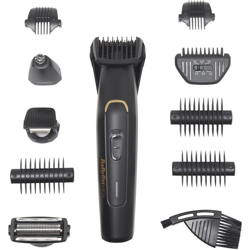 La tondeuse BABYLISS MT860E est un appareil 11 en 1. Prévue pour le visage, le corps et le torse, elle se destine à un usage quotidien. Avec 2 guides de coupe ajustables de 1 à 3,5mm et de 2 à 14 mm pour la barbe, la BABYLISS MT860E garantit des contours de qualité. La tondeuse BABYLISS MT860E possède 3 guides de coupe supplémentaire pour une tonte maîtrisée. Avec 2 guides de coupe de 3,5 et 7 mm pour le corps, elle garantit une finition impeccable au quotidien. Tout en finesse et en douceur, elle se transforme également selon vos besoins en une tondeuse de précision pour les sourcils, pour le nez et les oreilles. Produit neuf dans son emballage d'origine bénéficiant de la garantie originale du fabricant. EAN 3030050153576.