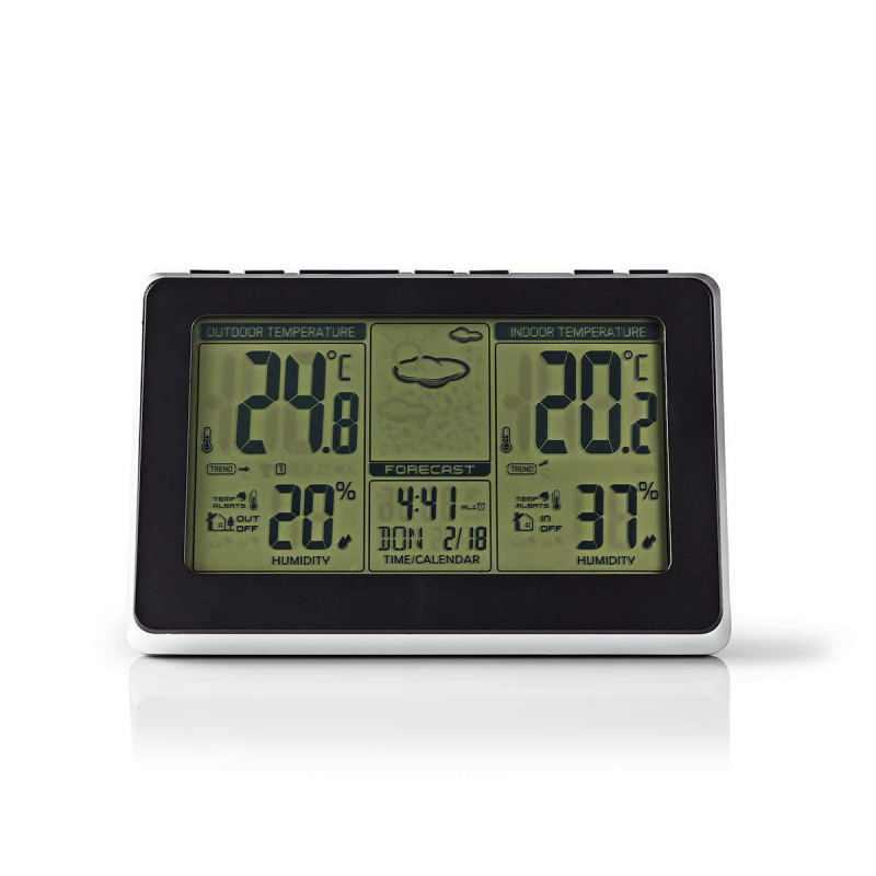 Cette Station Météo Sans Fil polyvalente Nedis® fournit des informations sur les températures intérieure et extérieure, ainsi qu'un bulletin prévisionnel des conditions météo. Par ailleurs, elle sert également de réveil donc, qu'il pleuve ou qu'il vente, vous serez toujours réveillé et debout à l'heure! Le capteur extérieur peut être placé n'importe où dans votre jardin. Il fonctionne avec 2 piles AA (non fournies) pour transmettre six niveaux de données météorologiques au réveil/station météo à l'intérieur via un signal de fréquence 433 MHz. Unité d'affichage élégante L'unité d'affichage élégante peut être placée n'importe où chez vous, puisqu'elle ne nécessite pas d'alimentation électrique principale, et fonctionne avec 3 piles AAA (non fournies). Réveil et conditions/prévisions météorologiques Il vous propose des informations sur la date et l'heure, un réveil avec fonction de rappel et six niveaux d'informations sur les conditions météo actuelles et prévues, y compris l'humidité, la température extérieure, la température intérieure et le niveau de confort. Peut être contrôlée à distance L'unité peut être contrôlée à distance à l'aide d'une radiotélécommande supplémentaire (non fournie) et son boîtier noir et argent est équipé d'un écran facile à lire renforcé par un rétroéclairage bleu élégant. Produit neuf dans son emballage d'origine bénéficiant de la garantie originale du fabricant. EAN 5412810271849.