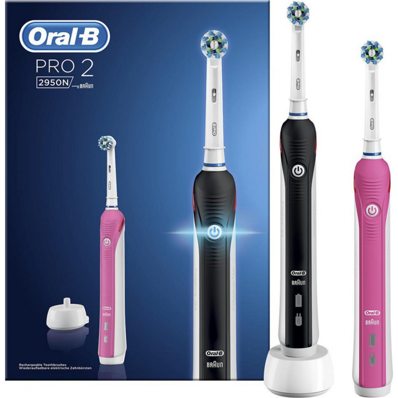 Brosse à dents électrique Oral-B Pro 2 2950 CrossAction (Black et Pink). Électroménager. Hygiène. Marque Oral-B. Les brosses à dents électriques Oral-B Pro 2 2950 CrossAction offrent un brossage complet au quotidien. Référence fabricant C1052727. EAN 4210201182269.