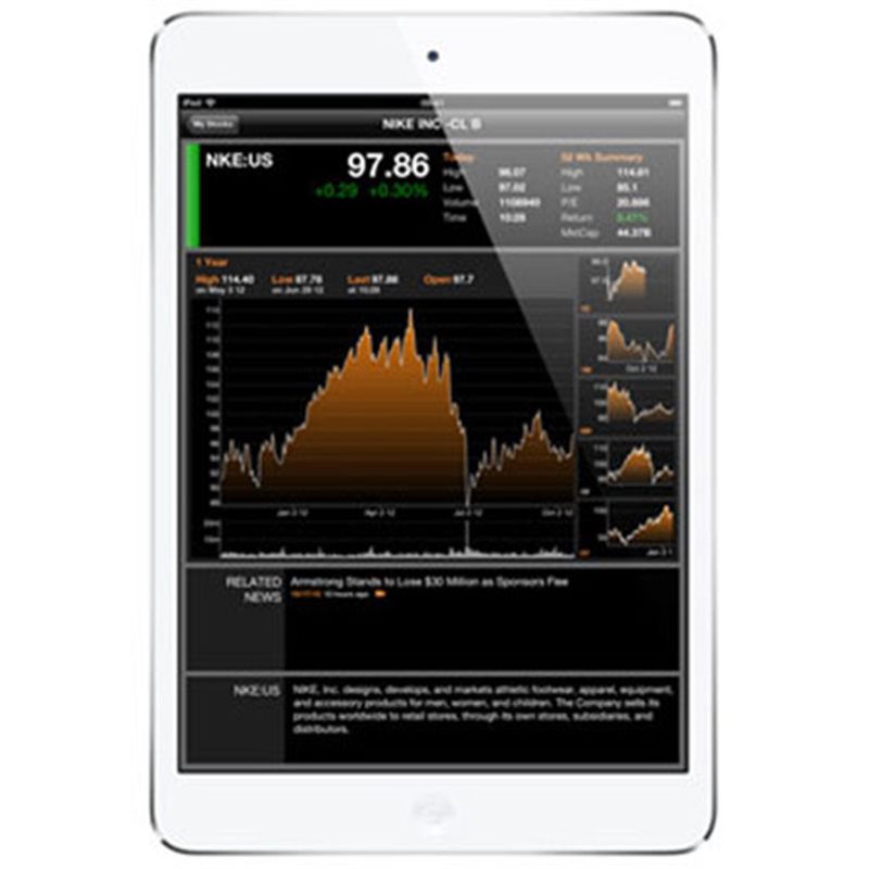 iPad mini Wi-Fi 16Go (blanc argenté) [référence Apple MD531]. [late 2012] Écran Multi-Touch rétroéclairé par LED de 7,9špouces Résolution de 1024 x 768 pixels Revêtement oléophobe résistant aux traces de doigts Processeur A5 bic÷ur Caméra FaceTimešHD 1,2šMpx Appareil photo iSight 5šMpx Jusqu'à 10šheures d'autonomie Wi-Fi 802.11a/b/g/n Bluetoothš4.0 Connecteur Lightning 308šgrammes iOS 6 (nouveau câble de recharge électrique USB/Lightning inclus, adaptateur secteur non inclus) (matériel d'occasion reconditionné et certifié, grade , garantie totale 2 ans). EAN 0885909667581.