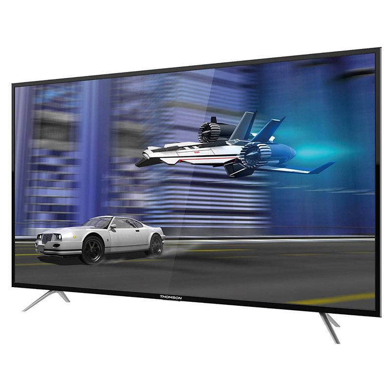 Thomson Smart TV LED 65" 4K UHD HDR. Offre spéciale avec extension de garantie à 3 ans. Caractéristiques : - Taille écran 65" (165 cm) rétro-éclairage LED - Résolution UHD 3840 x 2160 pixels - Luminosité 370 Cd/m2 - Mega Constraste - Indice 1200 - Processeur Dual Core avec traitement automatique de l'image - UHD Upscaling et Color Extender - Pure Image Ultra HD - Progressive Scan - Haut-parleurs 2 x 16 W - Tuner TNT HD MPEG2 et MPEG4, DVB-T et DVB-T2 - Smart TV.3 - Wi-Fi 802.11 b/g/n - 2x USB 2.0, 2x HDMI, 1x Composite - Classe énergétique A - Poids 20,8 kg (matériel neuf non déballé, garantie totale 3 ans).
