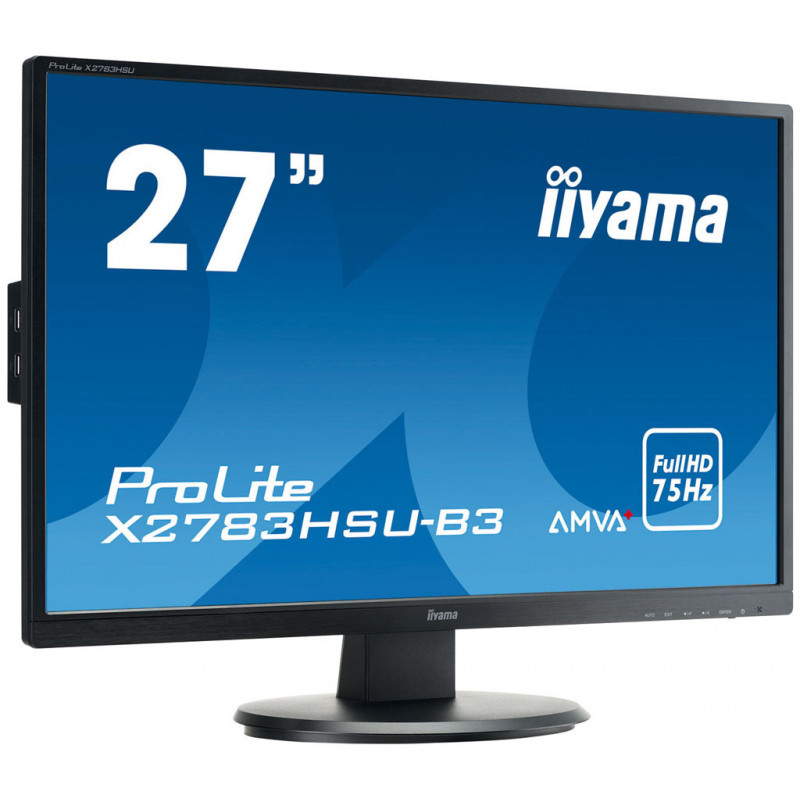 IIYAMA 27" Full HD ProLite X2783HSU-B3 [référence Iiyama X2783HSU-B3]. Offre spéciale avec extension de garantie à 3 ans. Couleurs précises et consistantes avec de grands angles de vision. 1920 x 1080 Full HD (1080p) HDMI, VGA, DisplayPort 5,49 Kg (matériel neuf, garantie totale 3 ans). EAN 4948570115594.