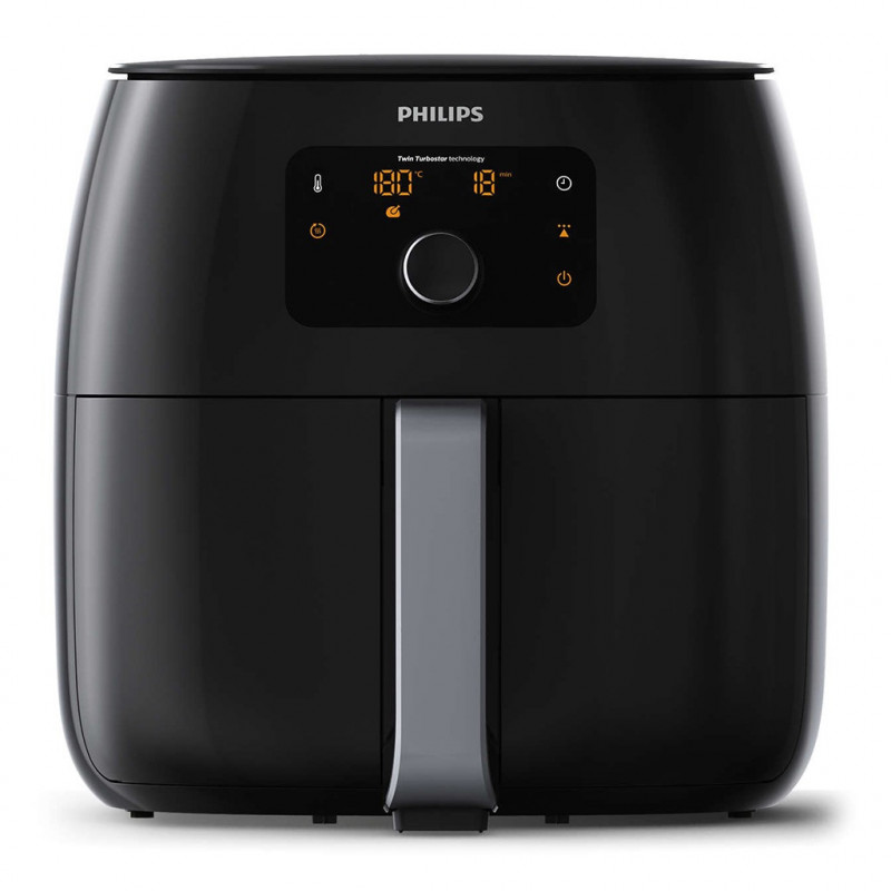 L'Airfryer produit de l'air chaud pour cuire vos aliments préférés avec très peu d'huile, ce qui vous permet d'obtenir des fritures contenant jusqu'à 90% de matières grasses en moins. Savourez d'excellentes fritures croustillantes, avec une quantité minime de matières grasses. Grâce au système de chauffage et au moteur puissants associés à notre nouvelle technologie Twin TurboStar, l'air chaud circule de manière homogène dans la totalité de la cuve de l'Airfryer. Conçu pour extraire la matière grasse que vous pouvez récupérer ensuite dans le récipient de graisse pour vous en débarrasser facilement. Par rapport à une friteuse classique, Philips Airfryer avec technologie Twin TurboStar limite les odeurs de friture sur vous et dans votre maison. EAN 8710103821847.