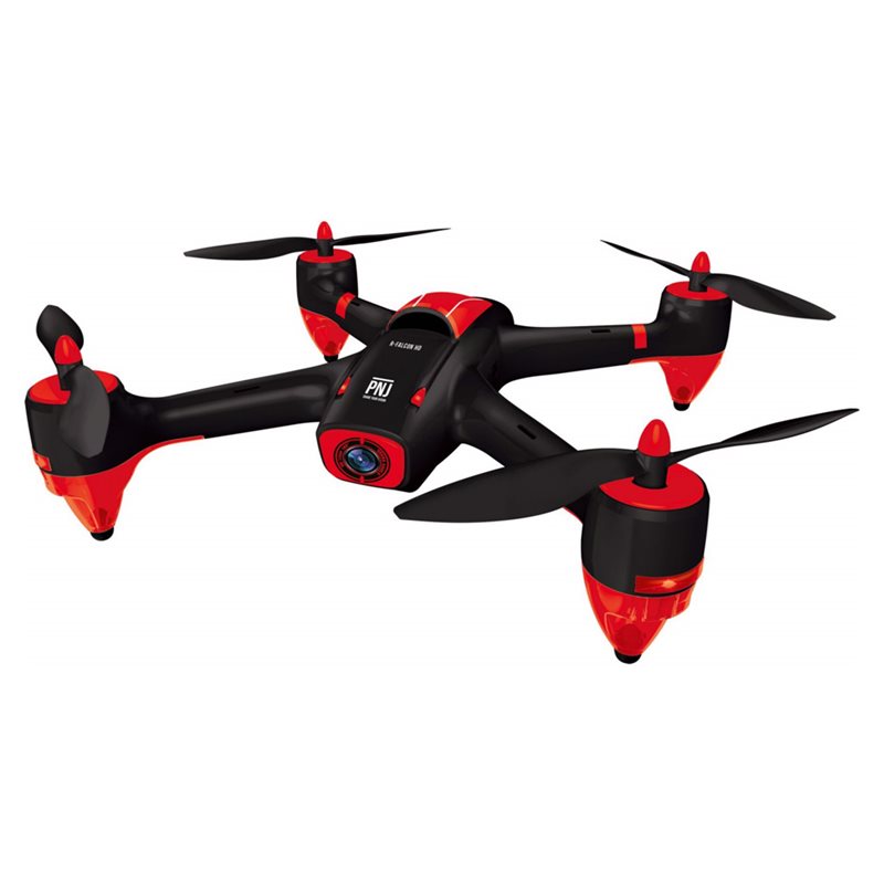 Drone PNJ R-Falcon HD [référence PNJ DRO-R-FALCON-HD]. Offre spéciale avec extension de garantie à 3 ans. - Portée : 30 m - Appareil photo - Caméra : HD, 720p - Vidéo en temps réeL - Alimentation : Autonome (batterie) - Autonomie : 10 mn - Pilotage: Radiocommande et smartphone/tablette - Retour d'image : Sur smartphone/tablette - Fonction headless - Fonction hover - Décollage automatique - Atterrissage automatique - Points de passage possibles (matériel neuf, garantie totale 3 ans). EAN 3760196430940.