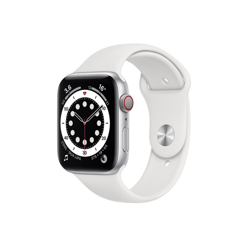 Apple Watch Series 6 GPS Cellular Aluminium Argent 44 mm Bracelet Sport Blanc MG2C3 (late 2020)