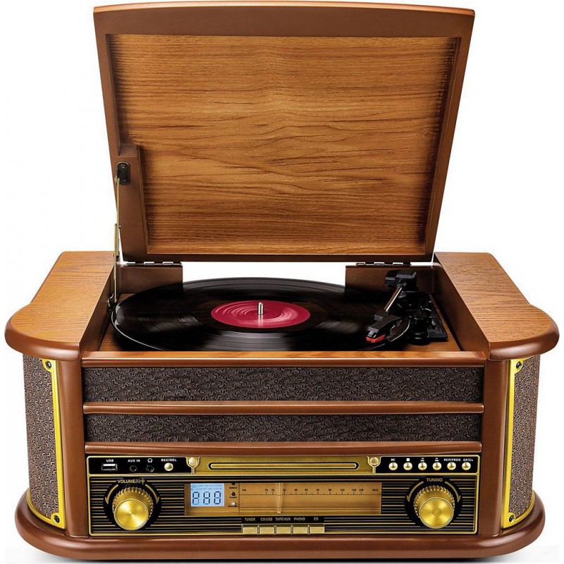 Redécouvrez la magie du son d&-39 antan avec le confort d&-39 aujourd&-39 hui. Ce tourne-disque Evidence Acoustics EA-PL400-WOOD vintage n&-39 est pas qu&-39 un objet de décoration, c&-39 est une machine à remonter le temps qui réunit vinyles, cassettes, CD, USB, Bluetooth et radio FM dans un seul et même appareil. Plongez dans une expérience sonore unique et pleine de style. - Puissance de sortie: 60W PMPO - Haut-parleurs stéréo intégrés x2 - Tourne-disque 3 vitesses: 33, 45 et 78 tours - Lecteur CD - Lecteur de cassettes Audio - Radio FM - Port USB - Entrée AUX Sortie AUX MP3 pour casque - Sortie RCA pour connexion à un système audio externe - Bluetooth 5.4 / Portée: 10m - Rapport signal/bruit: 50dB - Fonction d&-39 enregistrement (format MP3) - Impédance du haut-parleur: 4 Ω - Réponse en fréquence: 100 Hz - 10 kHz - Adaptateur secteur (fourni): 8 V - 1,2 A - Design vintage avec finition bois - Dimensions: 51 × 34,8 × 22cm - Poids: 8,19Kg. Produit neuf dans son emballage d'origine bénéficiant de la garantie originale du fabricant. EAN 3666630010931.