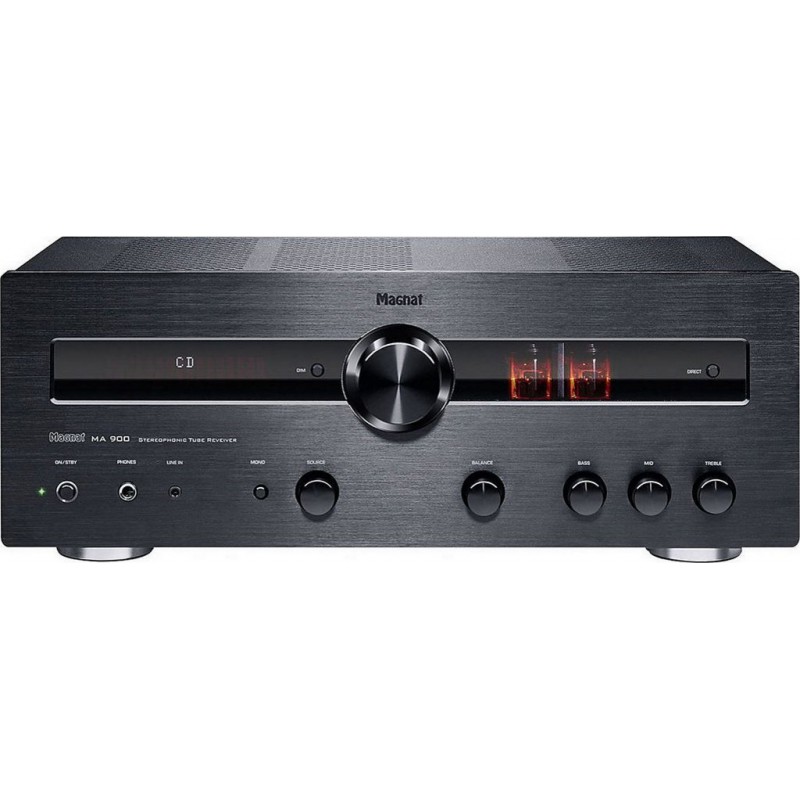 Amplificateur Magnat MA 900: pour une musicalité à la fois chaleureuse et dynamique Découvrez toute la beauté musicale et la puissance sonore que l&-39 amplificateur Magnat MA 900 est en mesure de vous fournir grâce à sa conception hybride. Hybride, car il met en oeuvre deux puissantes technologies à savoir la pré-amplification à tubes et l&-39 amplification à transistors de classe A/B. Forte puissance de 2x130W, mais aussi musicalité et chaleur sont au rendez-vous pour émoustiller vos sens. Les multiples entrées analogiques et numériques de cet ampli vous permettent d&-39 avoir plusieurs possibilités d&-39 utilisations. Les flux PCM jusqu&-39 à 24 bits / 192 kHz sont pris en charge, de même que les musiques diffusées depuis une source Bluetooth comme votre smartphone ou votre tablette. Et ce n&-39 est pas tout! Conception hybride Pour la pré-amplification, l&-39 amplificateur Magnat MA 900 se dote d&-39 une paire de tubes électroniques ECC 81 afin d&-39 apporter fluidité et chaleur ainsi que des harmoniques supplémentaires au son délivré. Avant leur installation, un rodage de plusieurs heures est effectué sur les tubes afin qu&-39 ils puissent fournir leurs meilleures performances dès votre première utilisation. Vous pouvez alors bénéficier de la meilleure musicalité possible dès le déballage de l&-39 appareil. DAC 24 bits / 192 kHz et Bluetooth aptX HD Dans sa conception, cet ampli intègre un DAC Cyrrus Logic qui est associé à deux entrées numériques coaxiales et à deux entrées numériques optiques. Ceci favorise la conversion analogique de signaux numériques issus de votre téléviseur, de votre lecteur CD, de votre lecteur réseau, etc. La diffusion des musiques depuis votre tablette, votre smartphone ou votre ordinateur sur l&-39 ampli peut être effectuée via le récepteur Bluetooth 5.0 compatible avec les codecs aptX HD et SBC. Connectique complète Pour ce qui est de la connectique, vous disposez d&-39 une section analogique exhaustive, avec au moins 5 entrées RCA. Deux entrées phono, une sortie casque 6,35 mm, une entrée mini-jack 3,5 mm, une sortie REC et des borniers sont aussi de la partie pour vous offrir le plus de possibilités de connexions possibles. Profitez à la fois de la technologie des tubes et de la dynamique des transistors pour jouir d&-39 un son chaleureux, doux et puissant avec l&-39 amplificateur Magnat MA 900. Produit neuf dans son emballage d'origine bénéficiant de la garantie originale du fabricant. EAN 4018843495156.